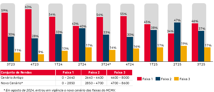 com 83% do VGV no 3T25 gerado por imóveis das faixas 1 e 2 do programa